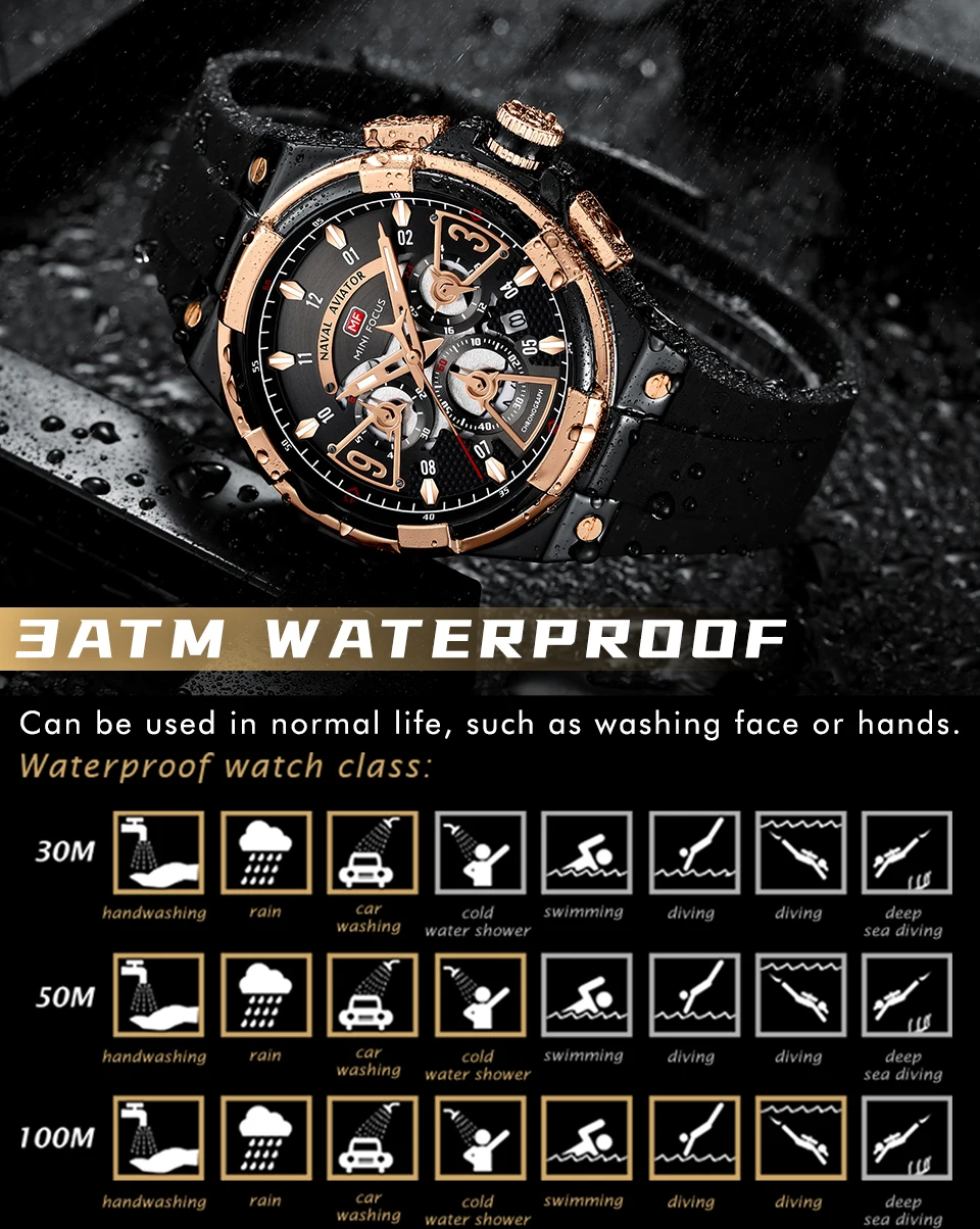 Note: 3Bar/ 30M indicates resistance to water splash only