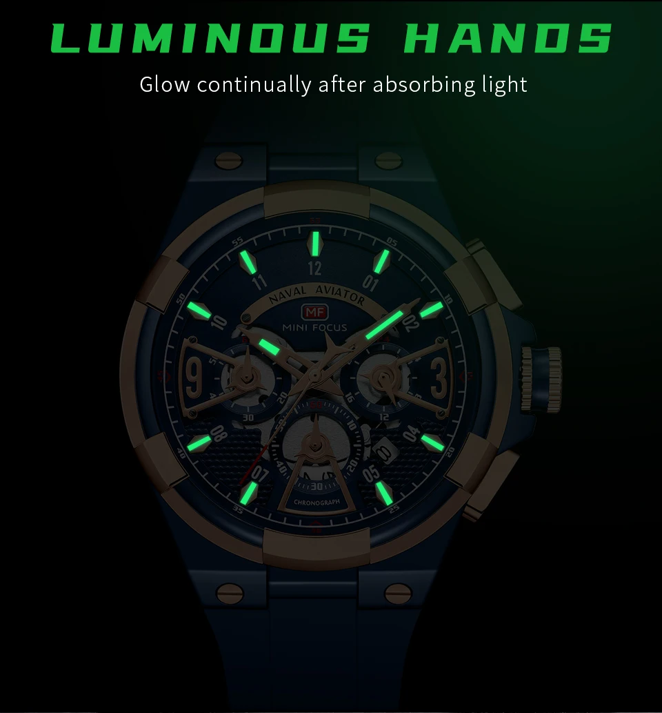 Features: Luminous Hands, Stop Watch, Auto Date, Chronograph